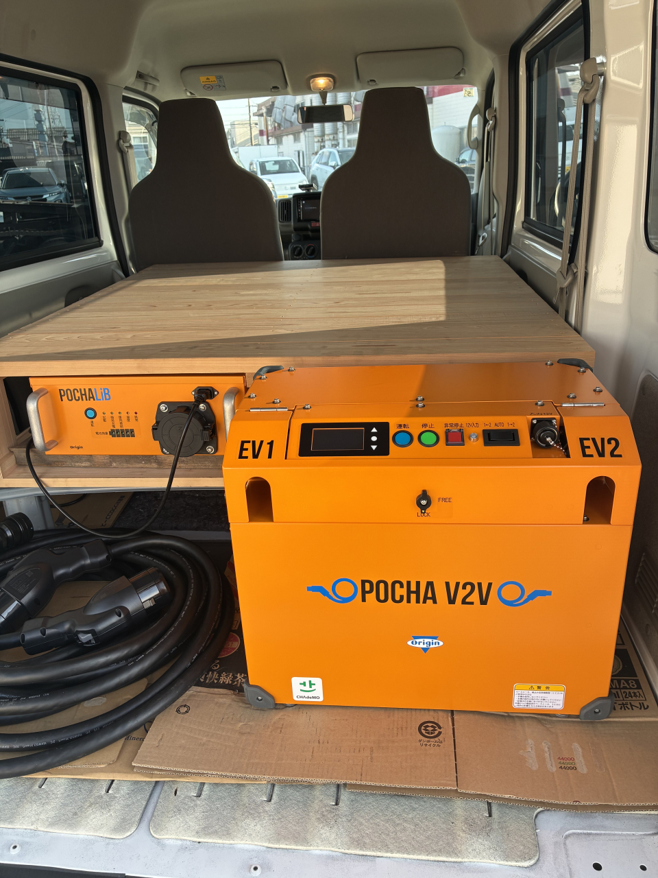 湖北インター営業所には電気自動車の急な充電切れに対応できるEV給電車両がございます